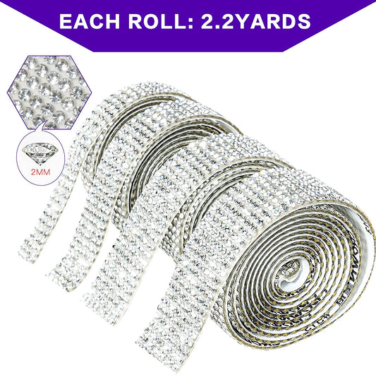4 Rolls Silver Self Adhesive Crystal Diamond Ribbon Bling DIY Car Phone Decoration