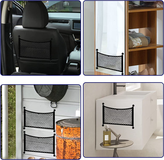 2 Pieces Stretchable Cargo Net Pocket and 3 Pocket Trunk Net Organizer